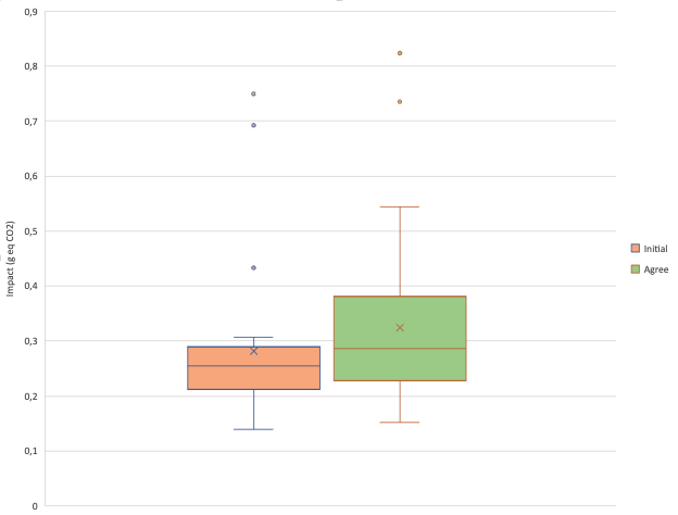 Nous allons maintenant utiliser le modèle d’impact Greenspector pour estimer l’impact environnemental des différents états de la validation RGPD. Pour cela, nous prenons l’hypothèse d’une localisation des utilisateurs et des serveurs en France, toutes les phases du matériel étant prises en compte.
