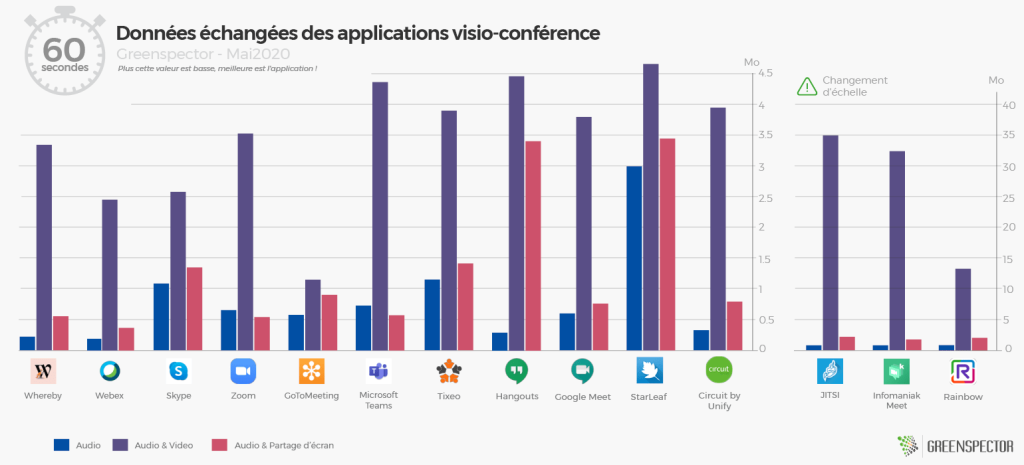 Le contexte de confinement actuel augmente mécaniquement l’usage d’outils de collaboration en ligne, en particulier les outils de visioconférence. Ce qui amène à une pression sur le réseau et plus particulièrement à une charge importante sur les serveurs de chaque solution. Il est donc important d’un point de vue efficience mais aussi impact environnemental de choisir la solution la plus sobre en ressources.